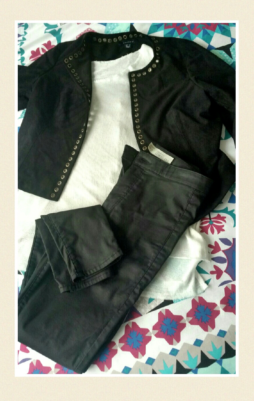 I lost 10 pounds and finally I can wear my Joni leather effect jeans from Top Shop. I put on Bershka sweater top and lovely Penneys suede jacket. I wish I could put my heels but I got a massive blister on my big toe… sore, sore… very sore. Runners instead today. Heels will need to wait for few days.