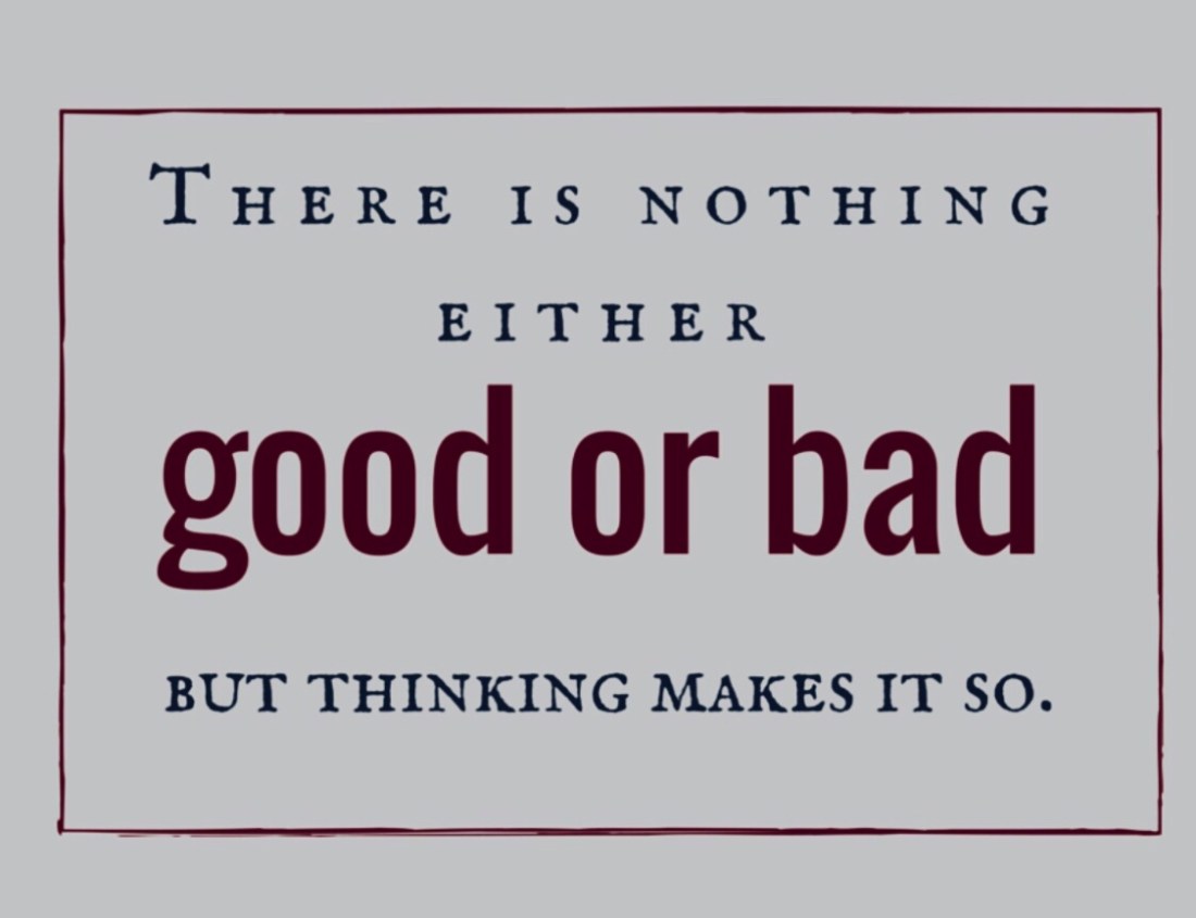 Shakespeare say: “There is nothing good or bad, but thinking makes it so.”